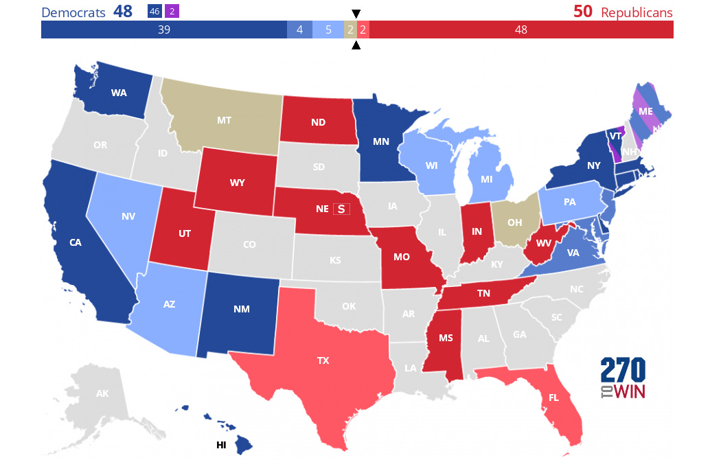 Democrats are at serious risk of losing their slim majority in November, as they must defend the seats currently held by Jon Tester in Montana and Sherrod Brown in Ohio, and Republicans are set to gain a seat in West Virginia.