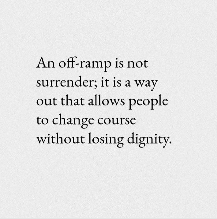 For years, pundits have speculated on how we might emerge from this era of Christian Nationalism and white supremacy. For the first time, a candidate is offering a strategy that actually has a shot. The idea of an off-ramp is crucial. An off-ramp is not surrender; it is not conversion by shame; it is not humiliation. It is a way out that allows people to change course without losing dignity.